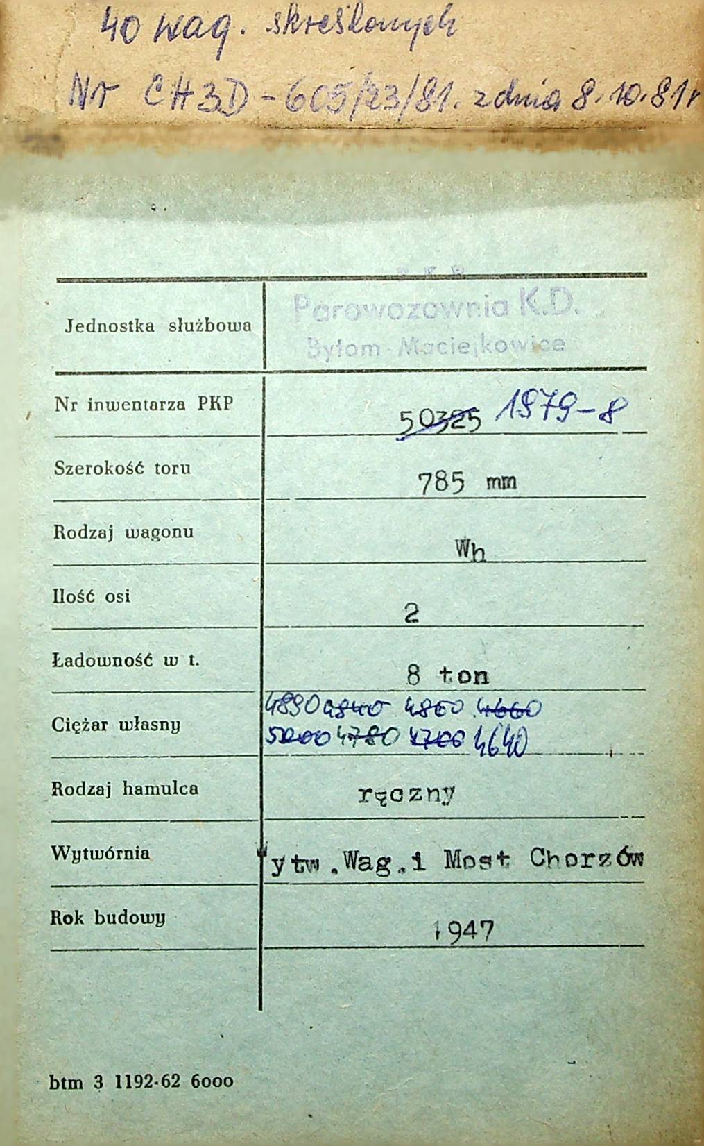 Karta wagonu Górnośląskich Kolei Wąskotorowych |