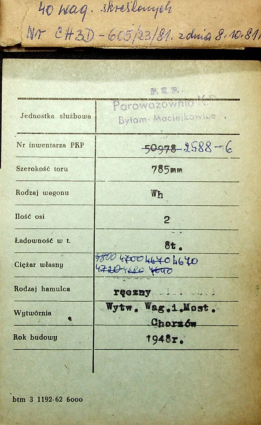 Karta wagonu Górnośląskich Kolei Wąskotorowych |