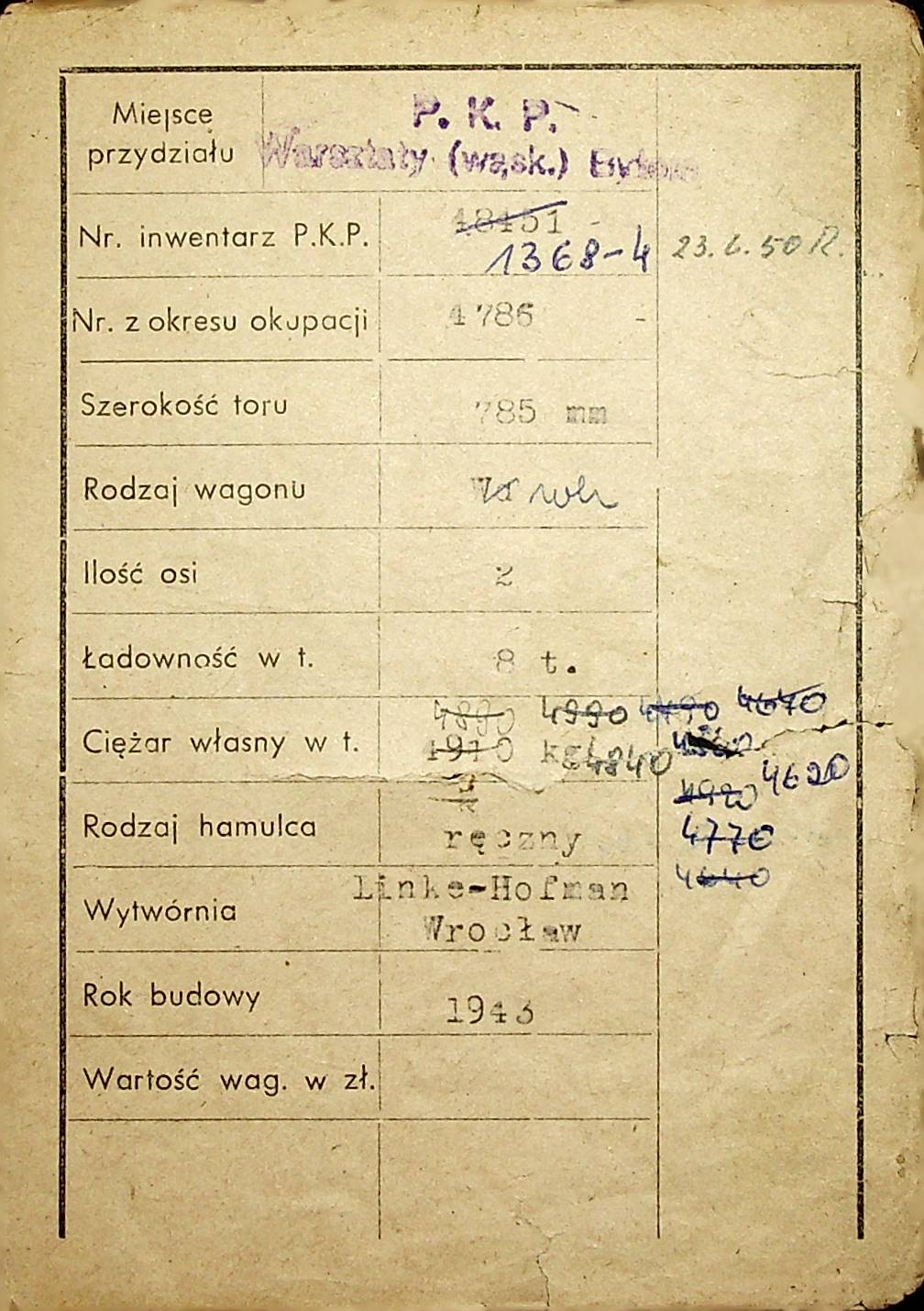 Karta wagonu Górnośląskich Kolei Wąskotorowych |