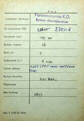 Karta wagonu Górnośląskich Kolei Wąskotorowych |