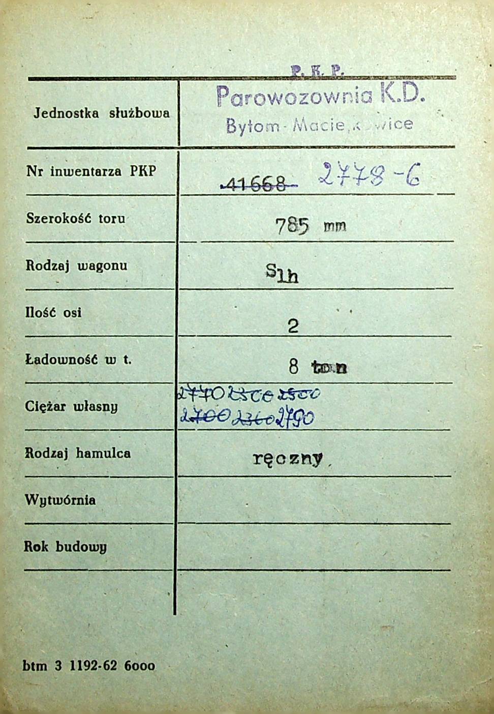 Karta wagonu Górnośląskich Kolei Wąskotorowych |