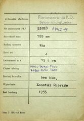 Karta wagonu Górnośląskich Kolei Wąskotorowych |