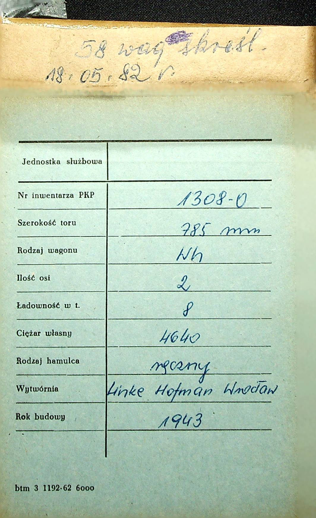 Karta wagonu Górnośląskich Kolei Wąskotorowych |