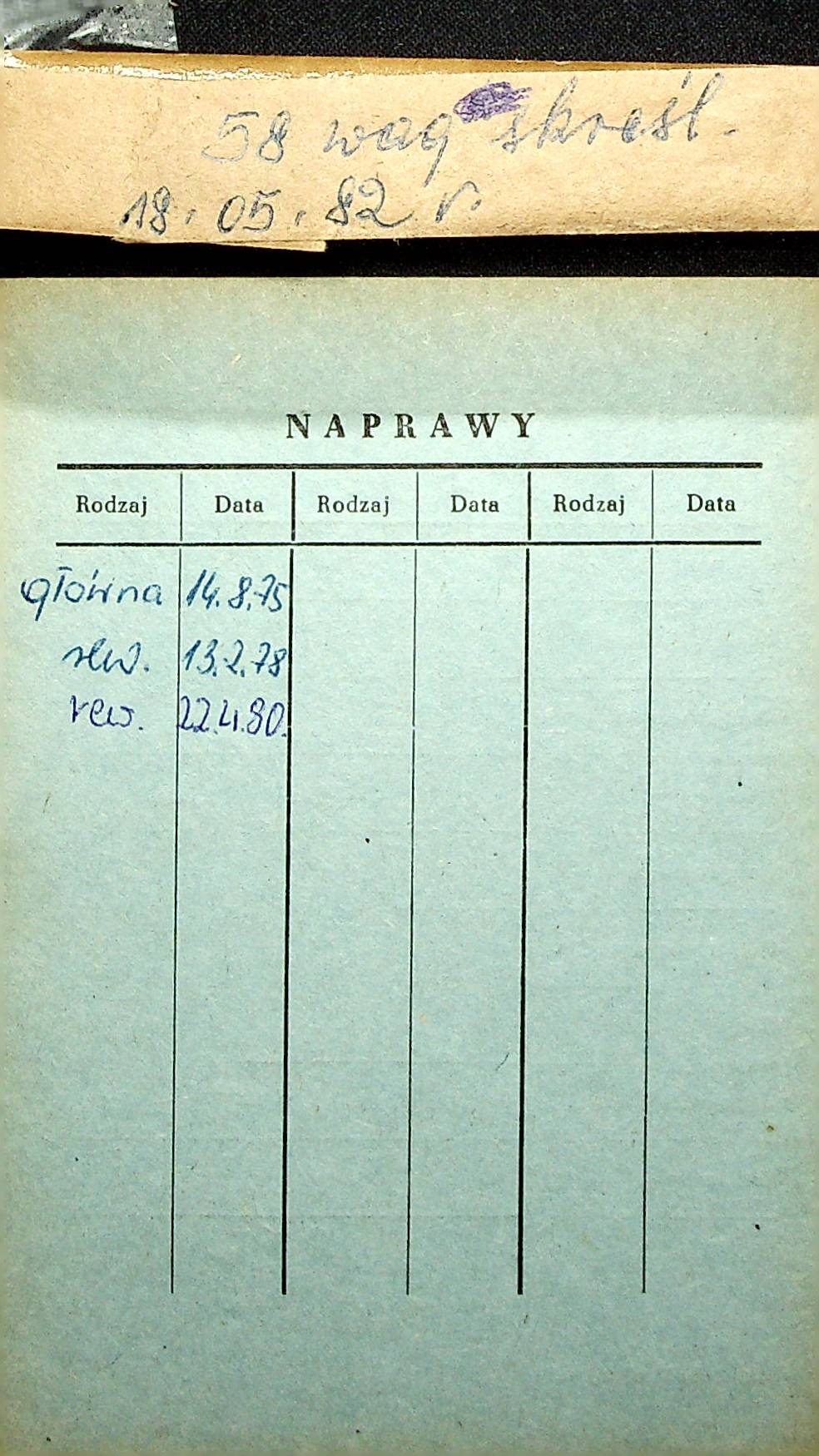 Karta wagonu Górnośląskich Kolei Wąskotorowych |