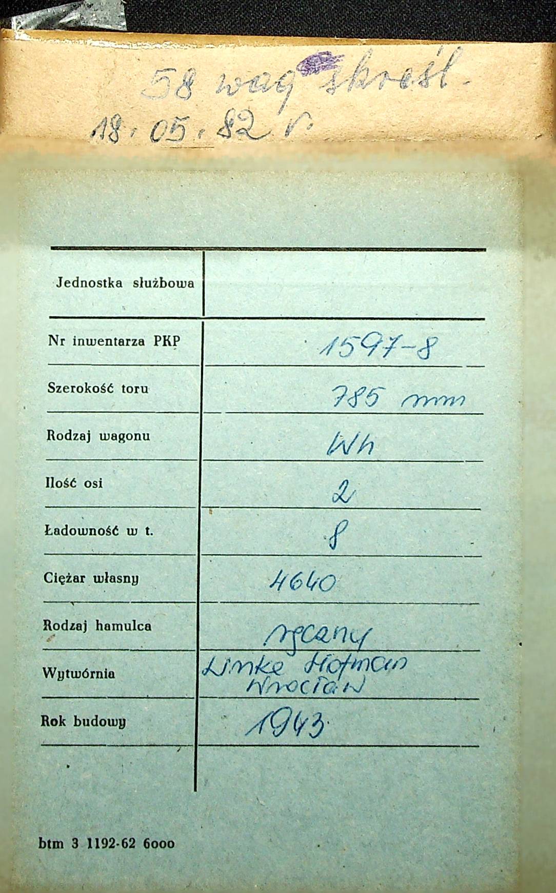 Karta wagonu Górnośląskich Kolei Wąskotorowych |