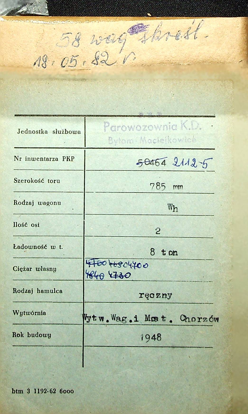 Karta wagonu Górnośląskich Kolei Wąskotorowych |