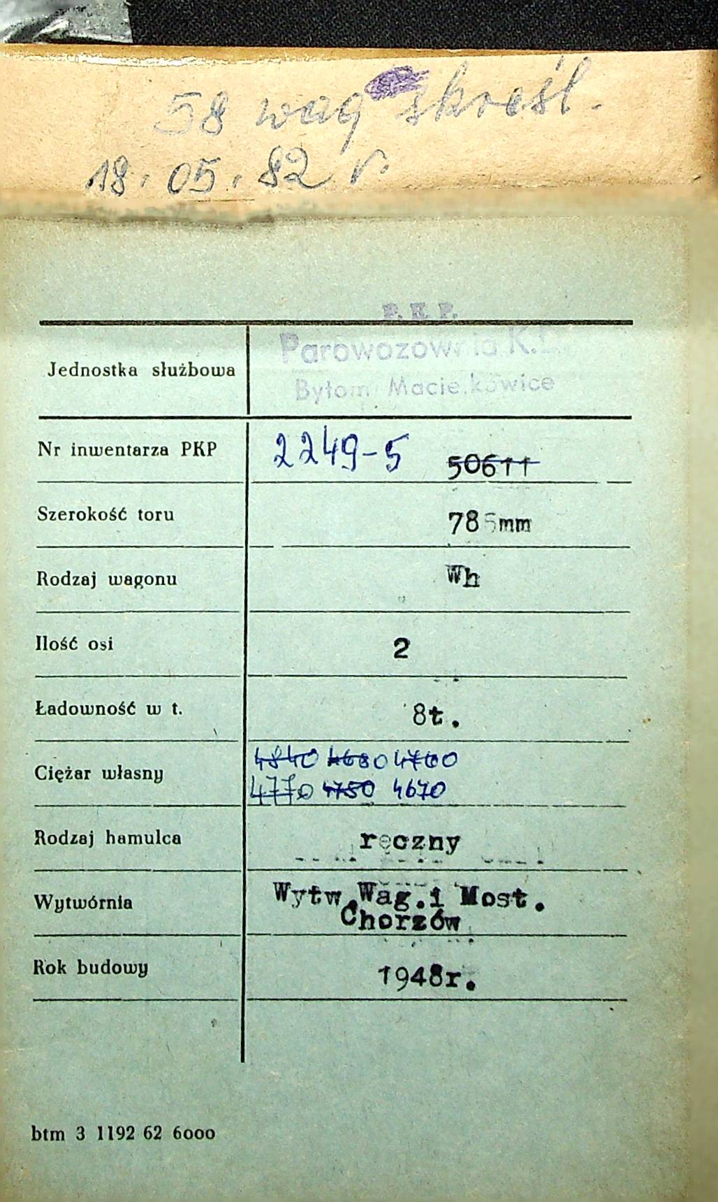 Karta wagonu Górnośląskich Kolei Wąskotorowych |
