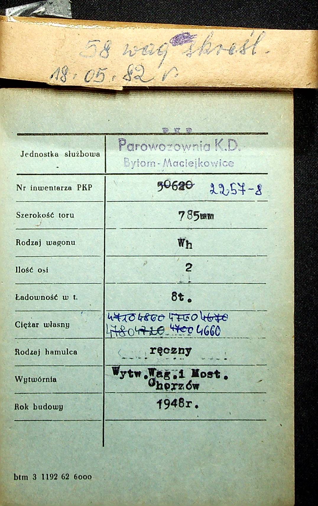 Karta wagonu Górnośląskich Kolei Wąskotorowych |