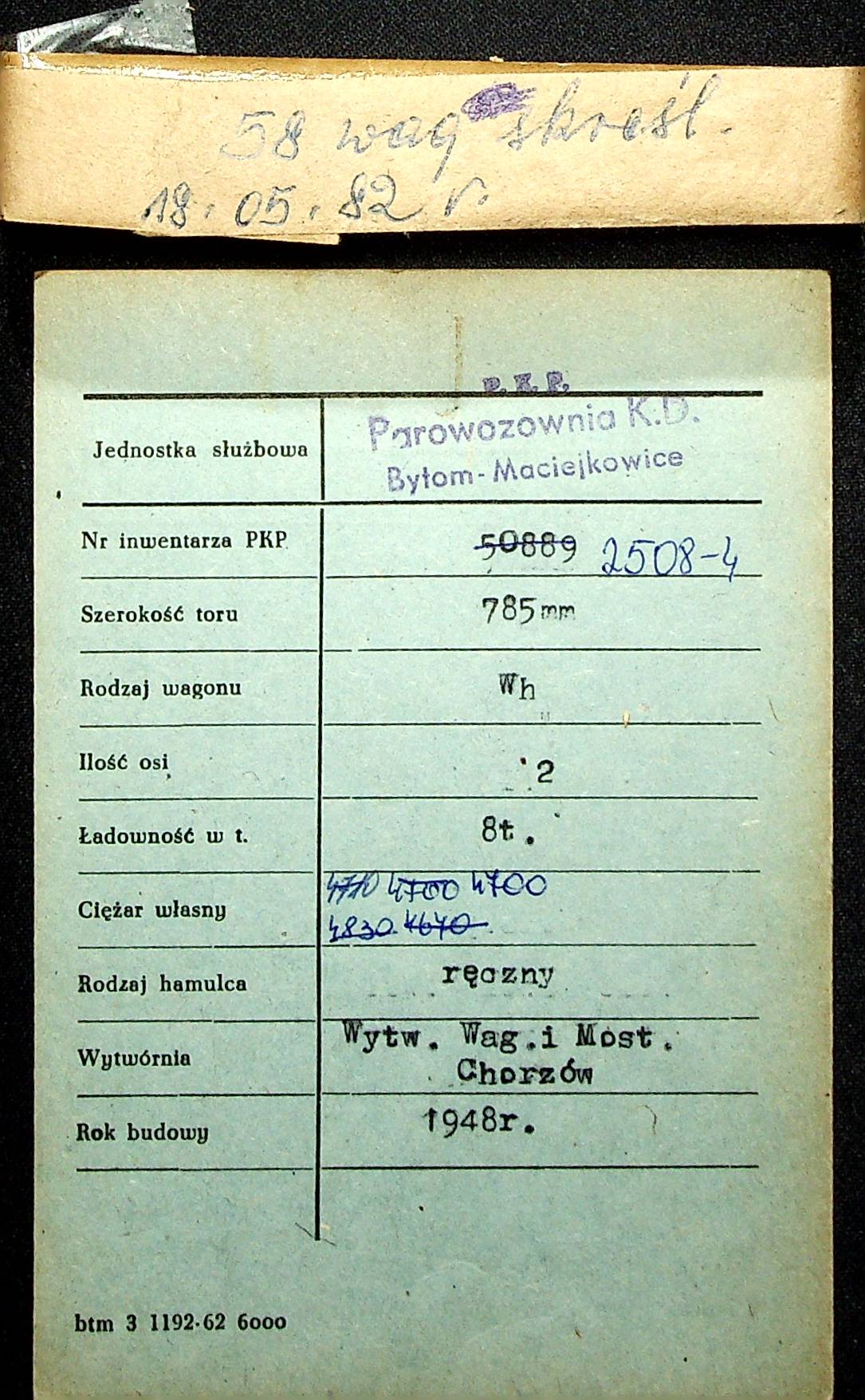 Karta wagonu Górnośląskich Kolei Wąskotorowych |