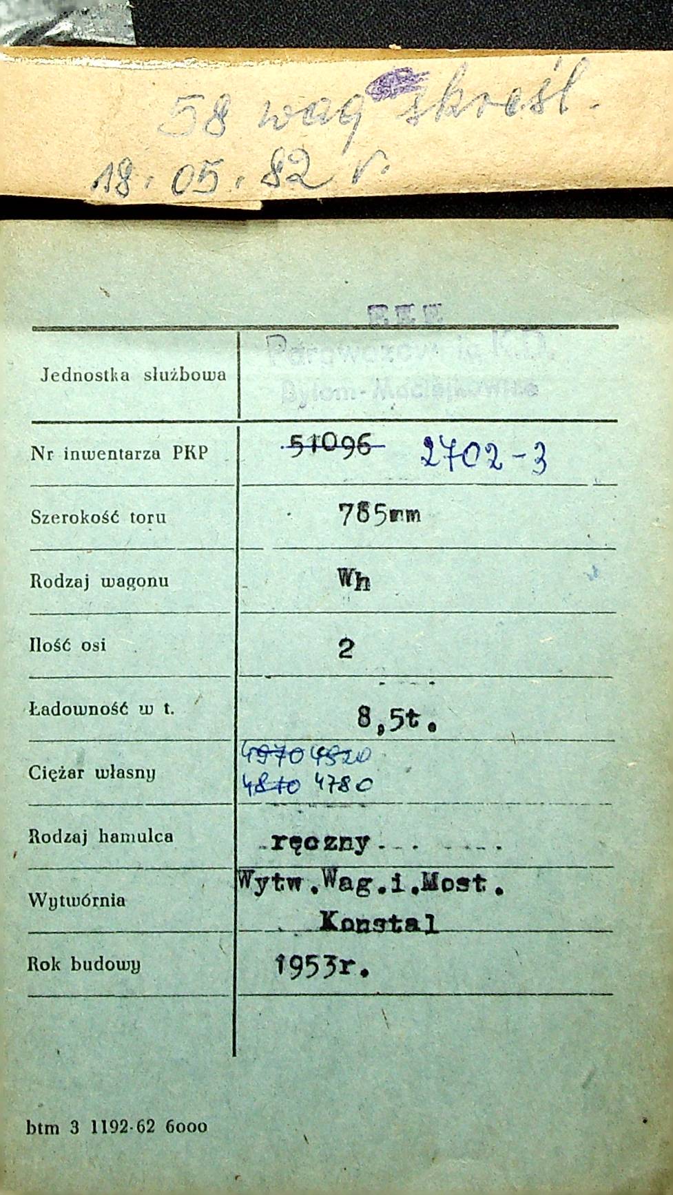 Karta wagonu Górnośląskich Kolei Wąskotorowych |