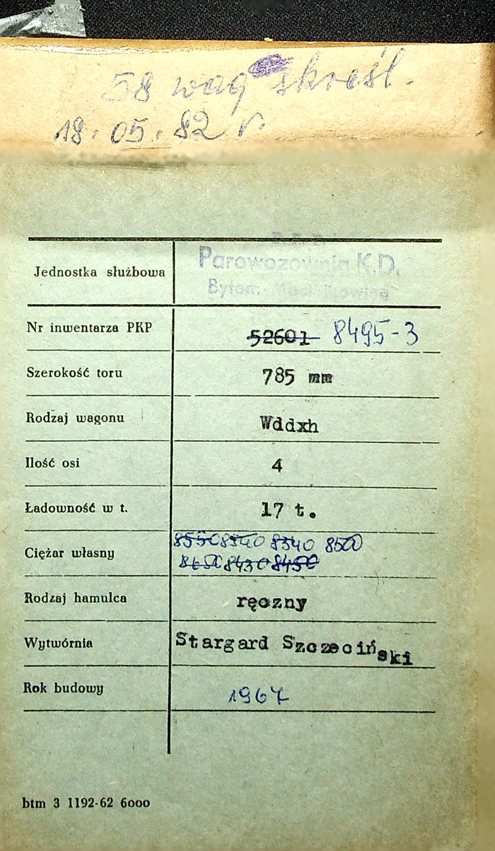 Karta wagonu Górnośląskich Kolei Wąskotorowych |