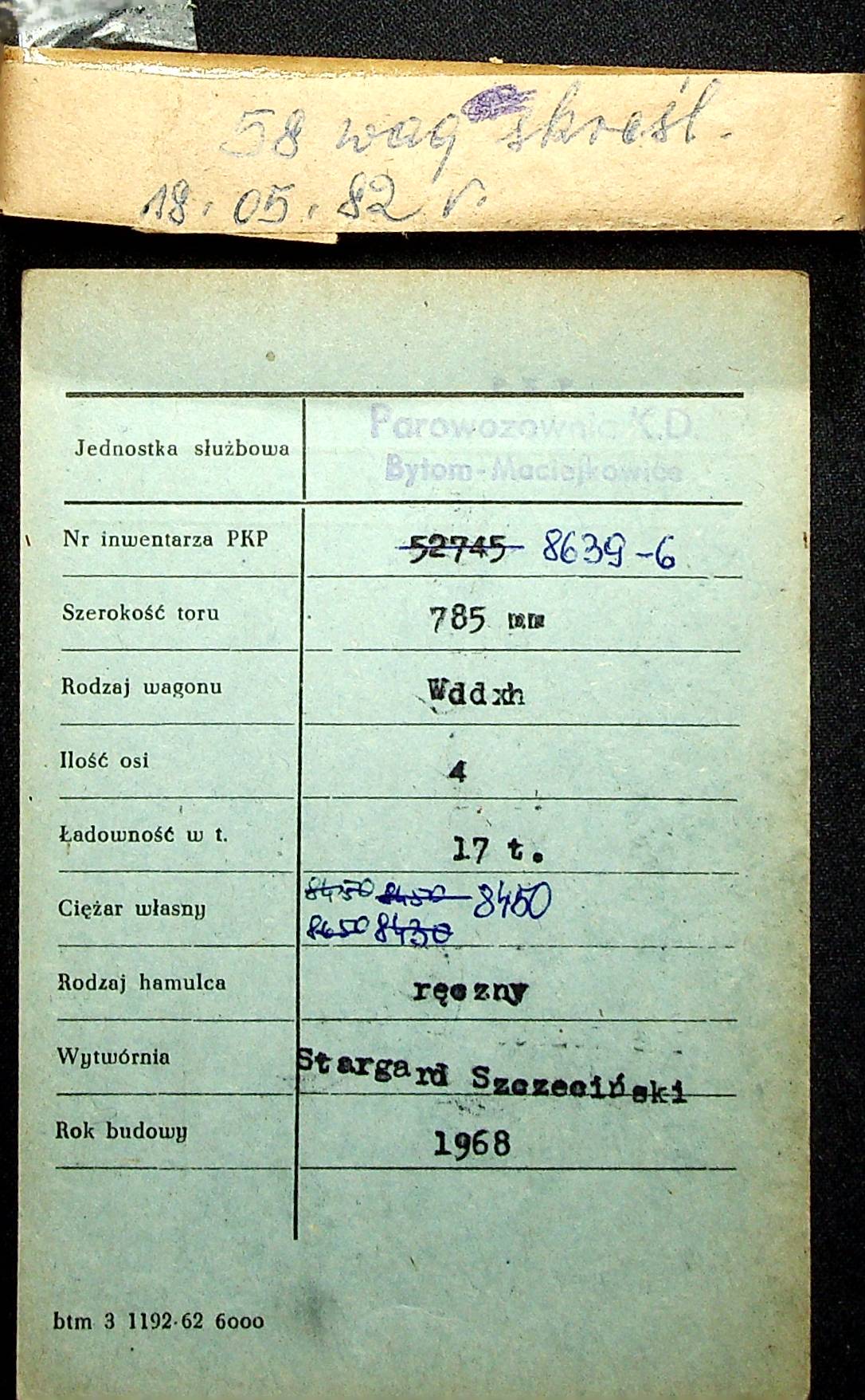 Karta wagonu Górnośląskich Kolei Wąskotorowych |