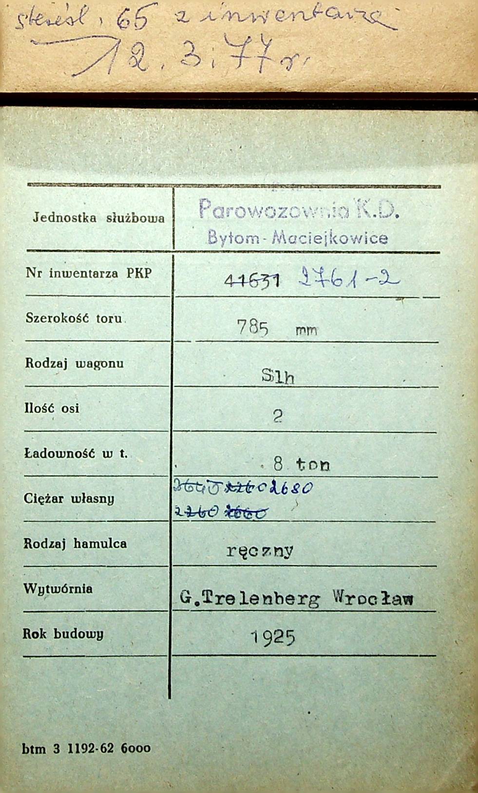 Karta wagonu Górnośląskich Kolei Wąskotorowych |