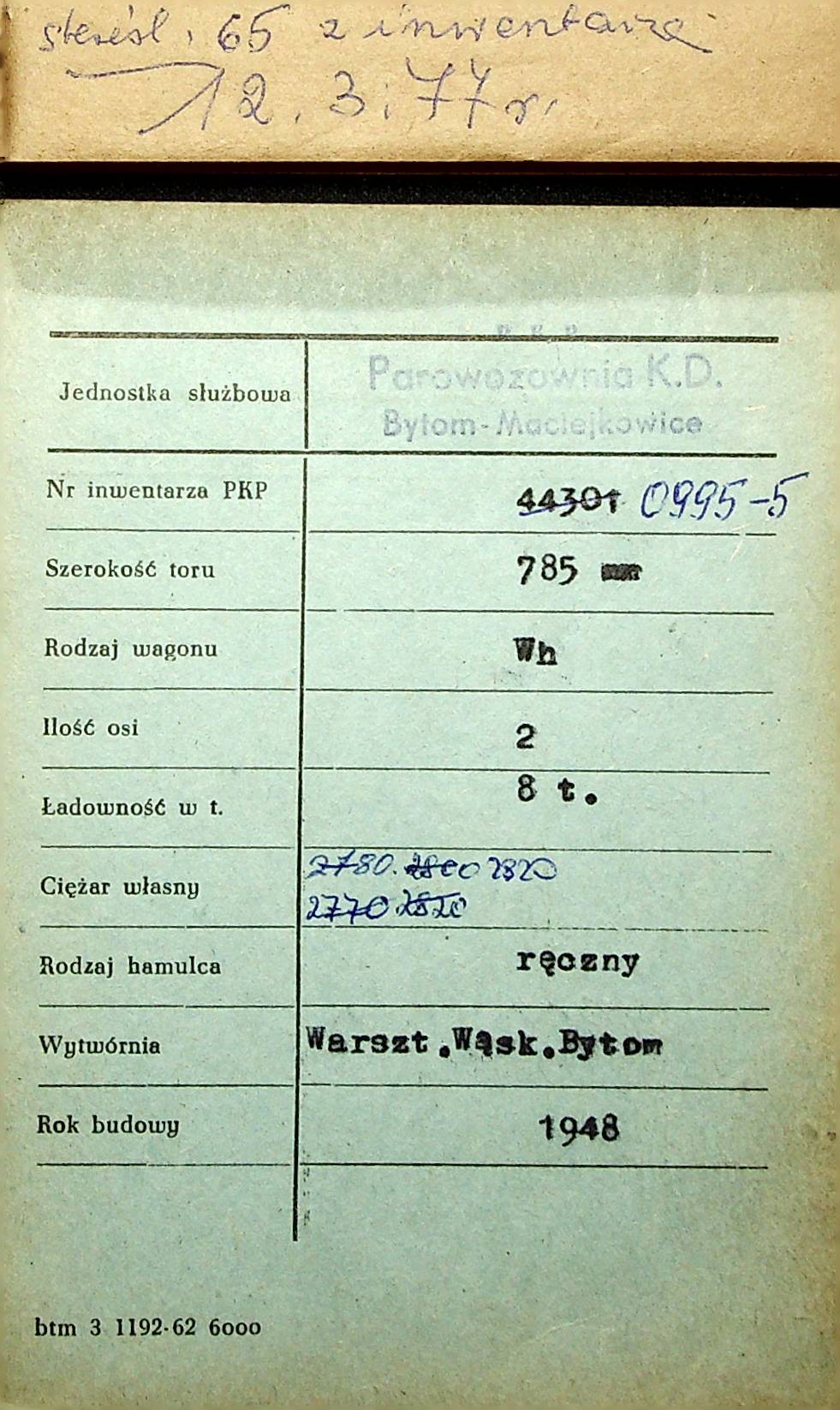 Karta wagonu Górnośląskich Kolei Wąskotorowych |