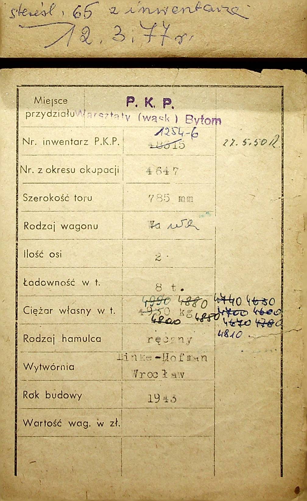 Karta wagonu Górnośląskich Kolei Wąskotorowych |