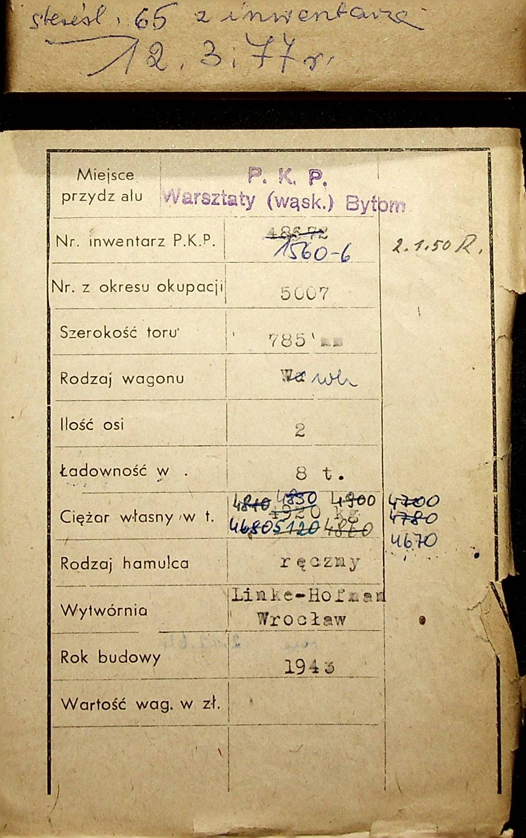 Karta wagonu Górnośląskich Kolei Wąskotorowych |