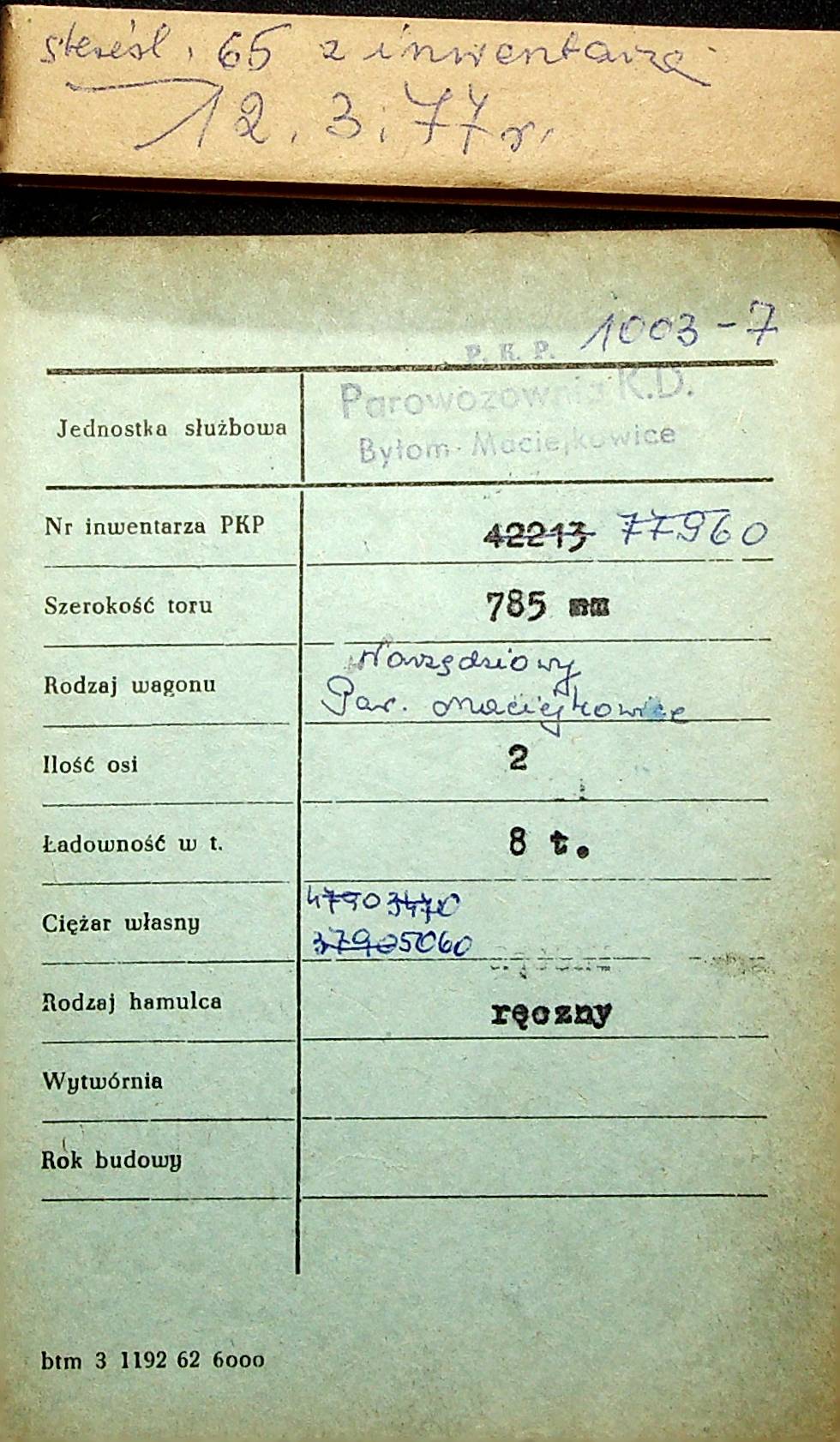 Karta wagonu Górnośląskich Kolei Wąskotorowych |