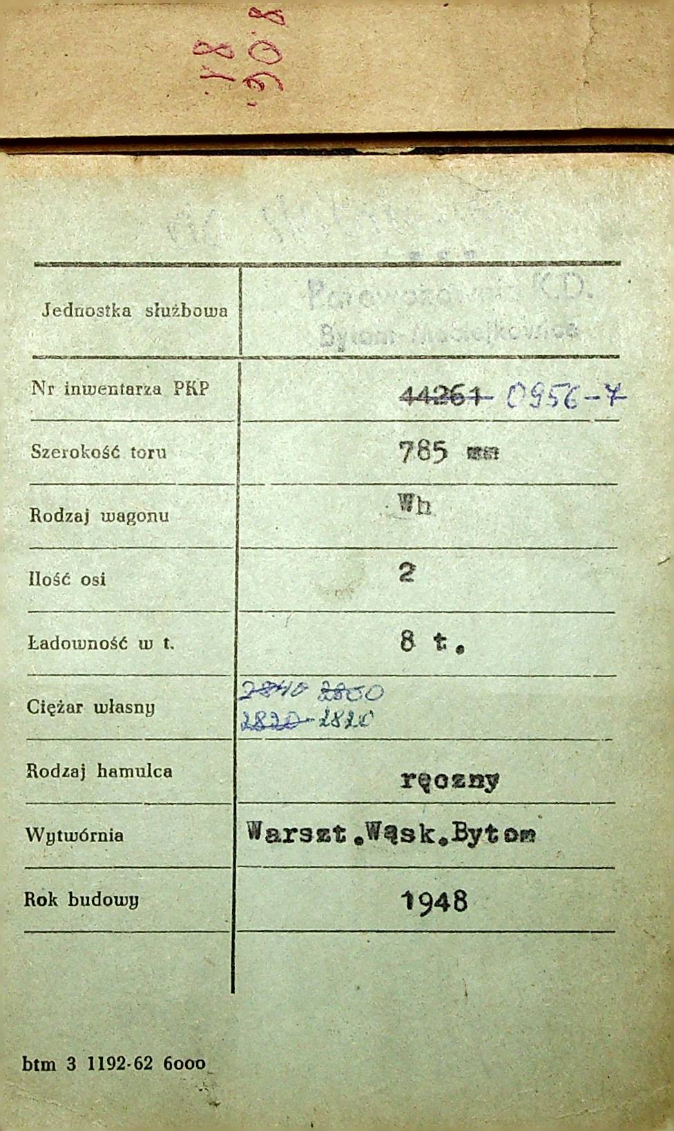 Karta wagonu Górnośląskich Kolei Wąskotorowych |