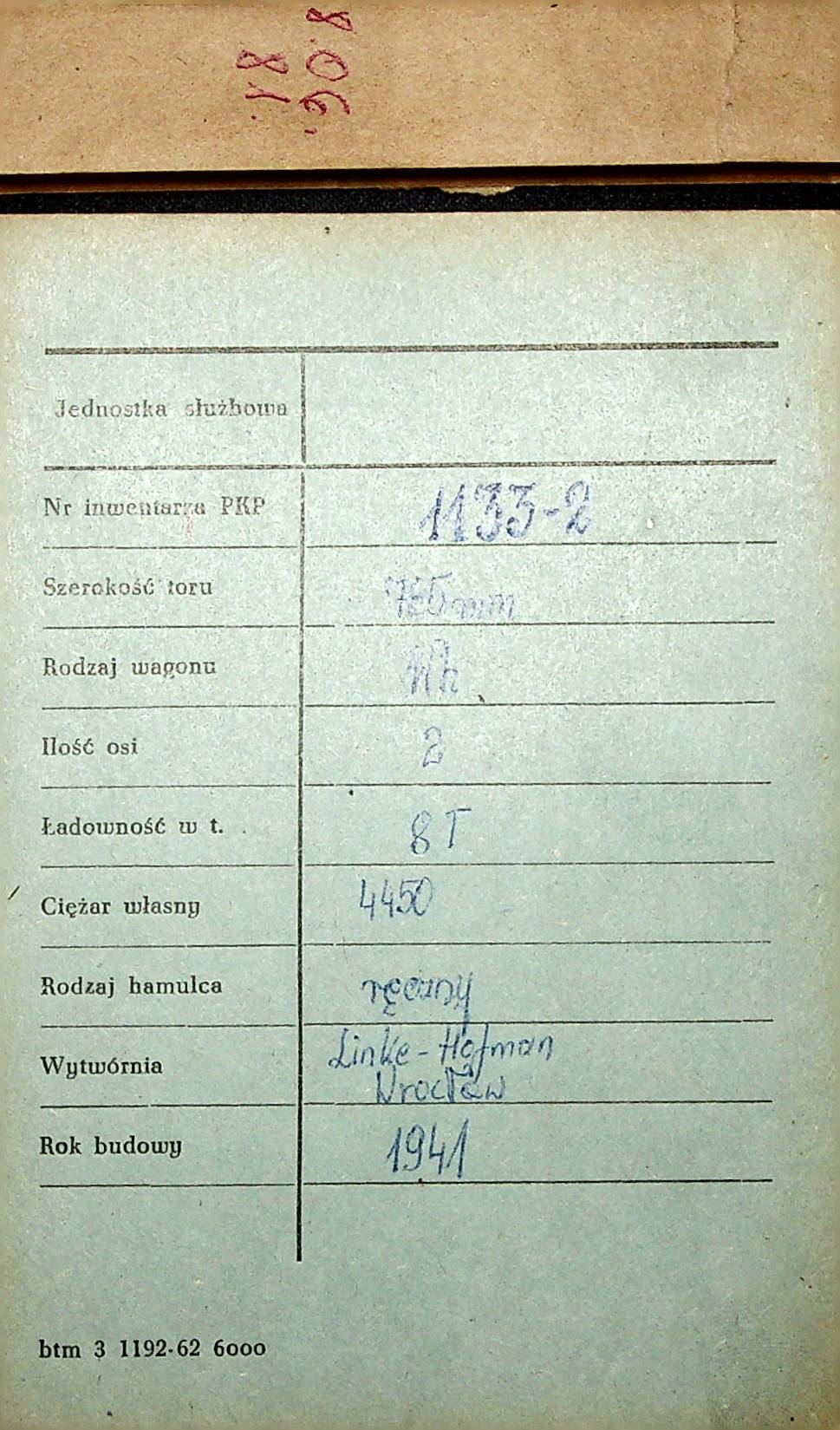 Karta wagonu Górnośląskich Kolei Wąskotorowych |