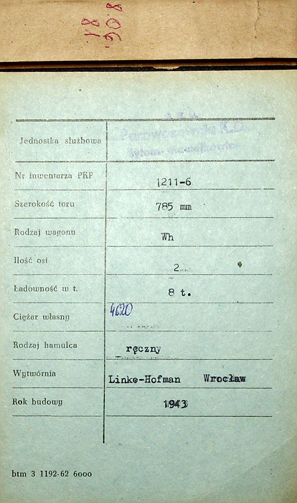 Karta wagonu Górnośląskich Kolei Wąskotorowych |