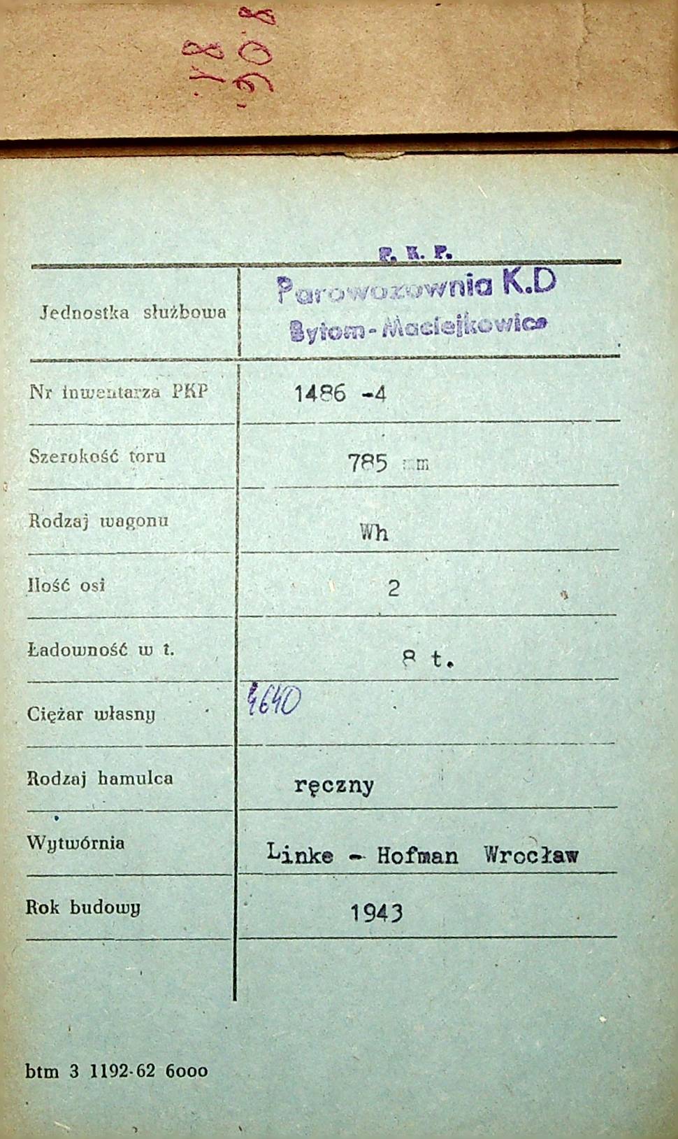 Karta wagonu Górnośląskich Kolei Wąskotorowych |