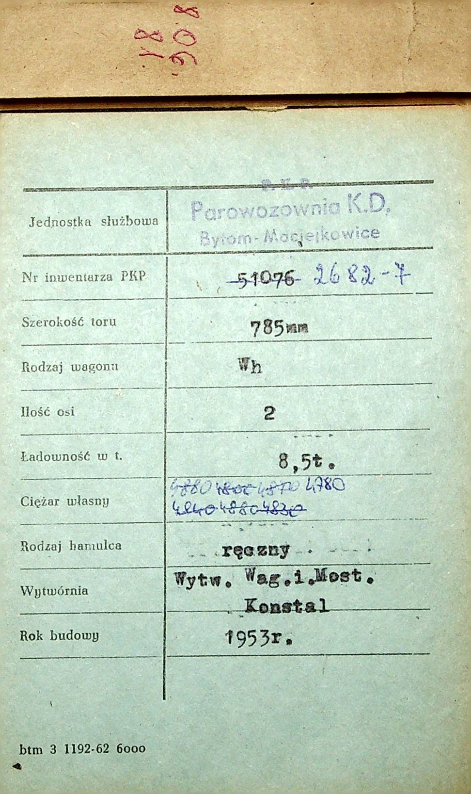 Karta wagonu Górnośląskich Kolei Wąskotorowych |