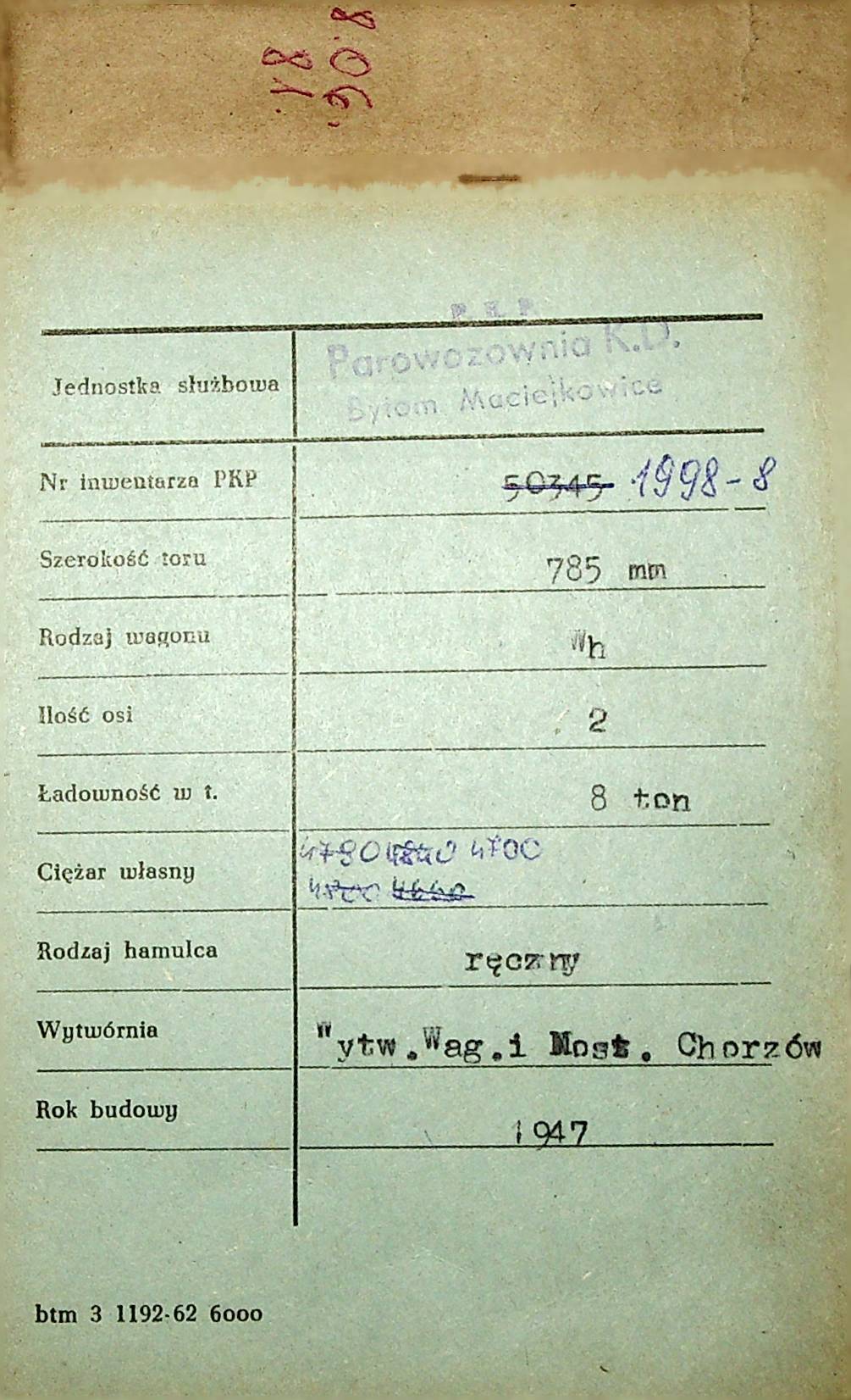 Karta wagonu Górnośląskich Kolei Wąskotorowych |