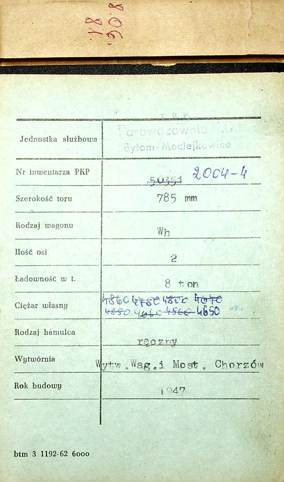 Karta wagonu Górnośląskich Kolei Wąskotorowych |