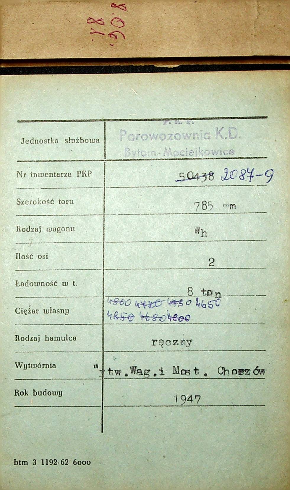Karta wagonu Górnośląskich Kolei Wąskotorowych |