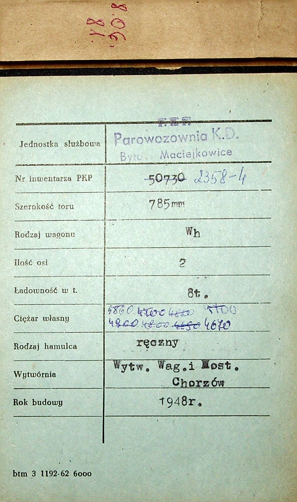 Karta wagonu Górnośląskich Kolei Wąskotorowych |