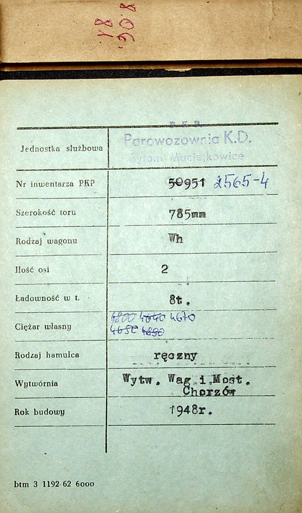 Karta wagonu Górnośląskich Kolei Wąskotorowych |