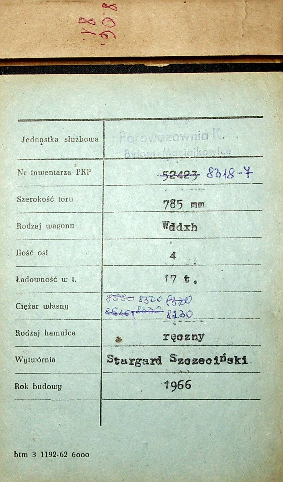 Karta wagonu Górnośląskich Kolei Wąskotorowych |