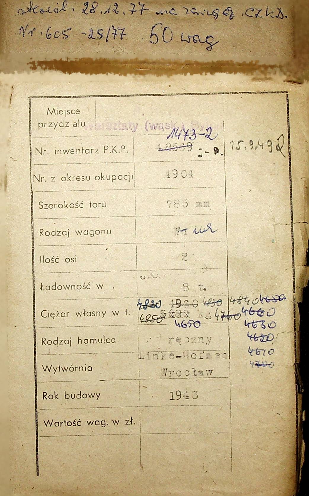 Karta wagonu Górnośląskich Kolei Wąskotorowych |