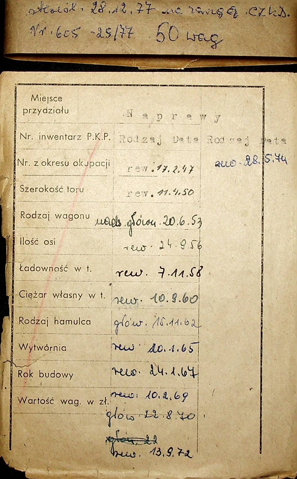 Karta wagonu Górnośląskich Kolei Wąskotorowych |