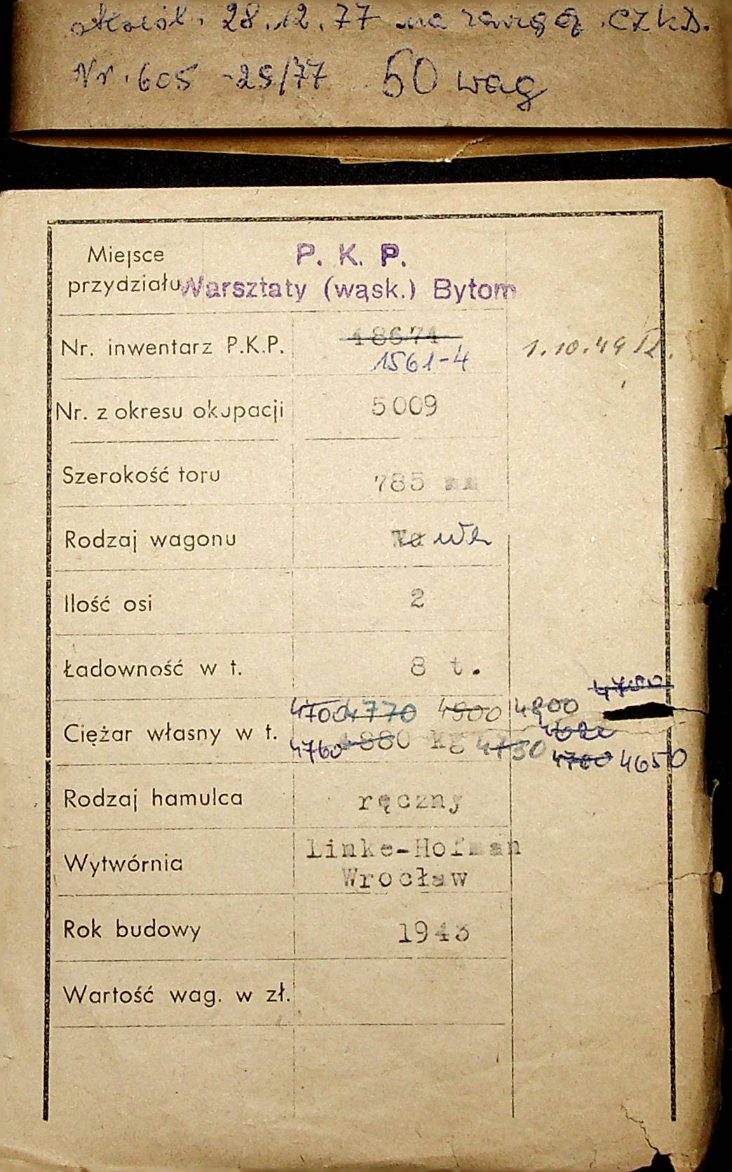 Karta wagonu Górnośląskich Kolei Wąskotorowych |