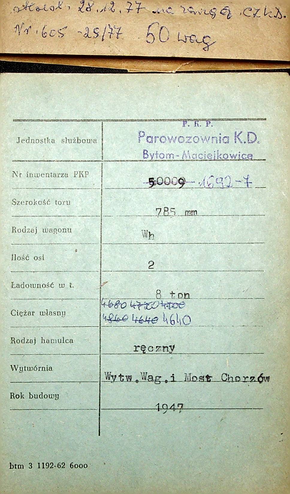 Karta wagonu Górnośląskich Kolei Wąskotorowych |