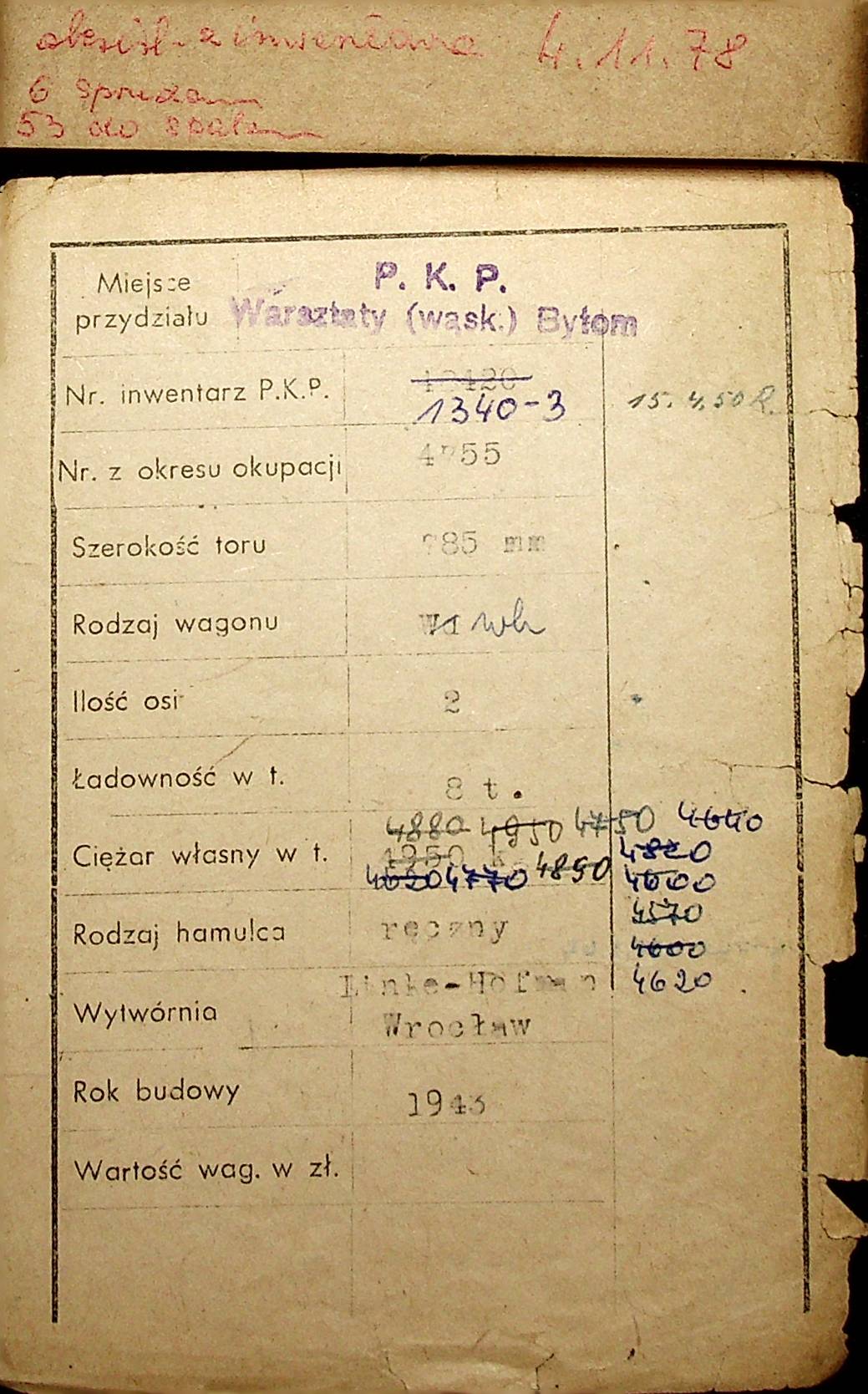 Karta wagonu Górnośląskich Kolei Wąskotorowych |
