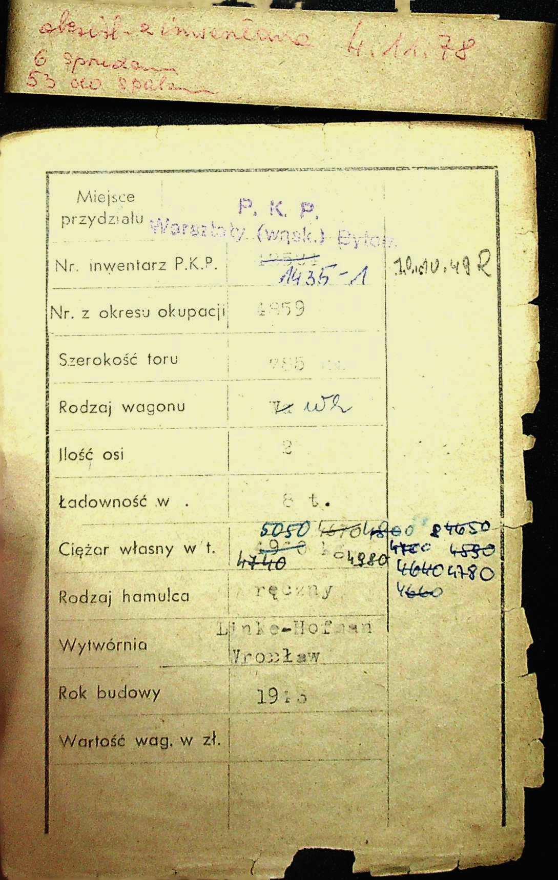 Karta wagonu Górnośląskich Kolei Wąskotorowych |