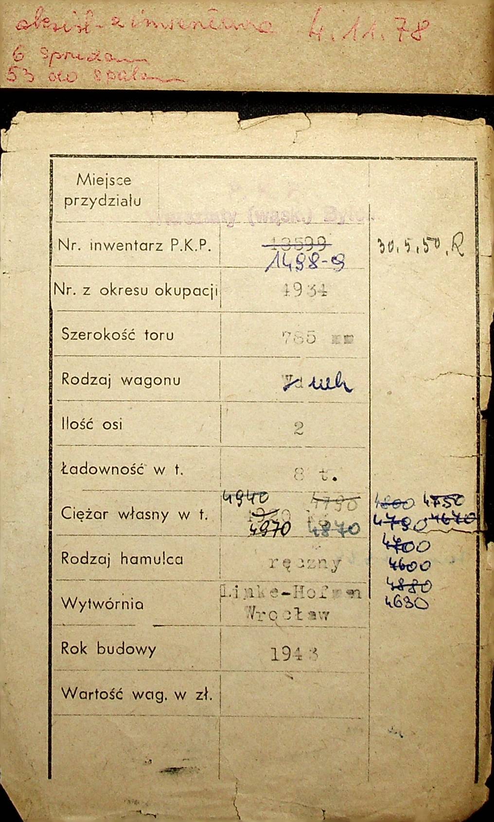 Karta wagonu Górnośląskich Kolei Wąskotorowych |