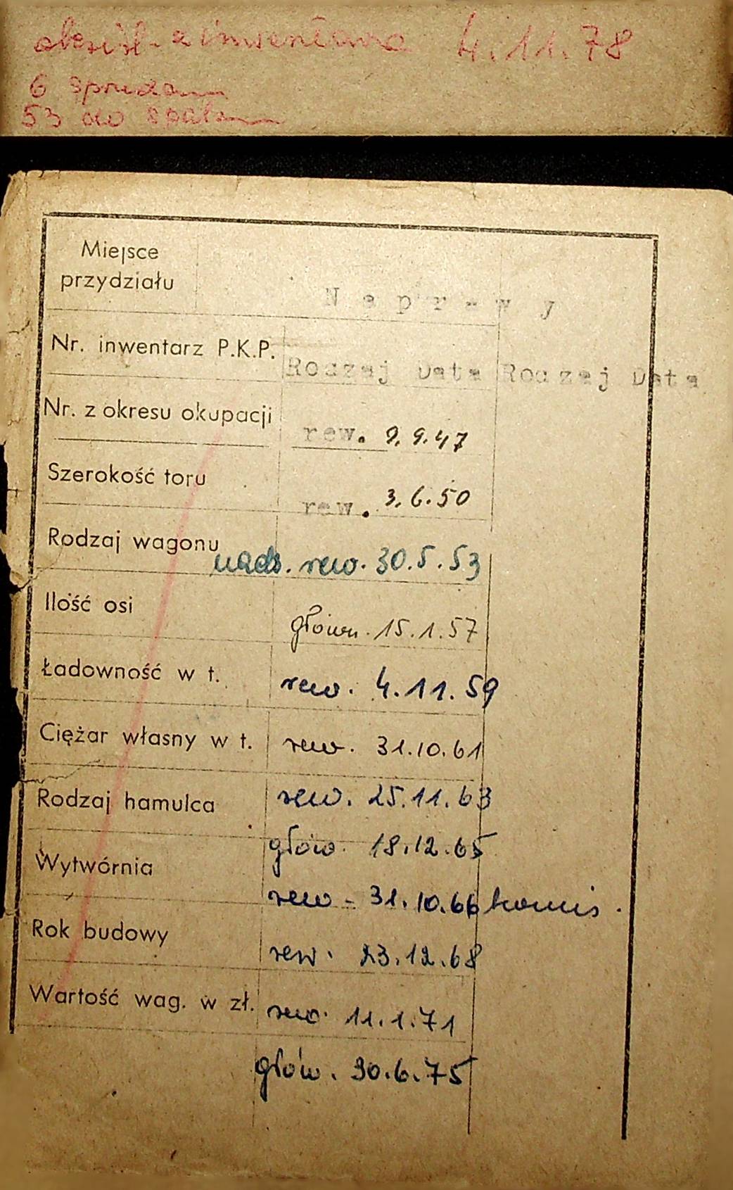Karta wagonu Górnośląskich Kolei Wąskotorowych |