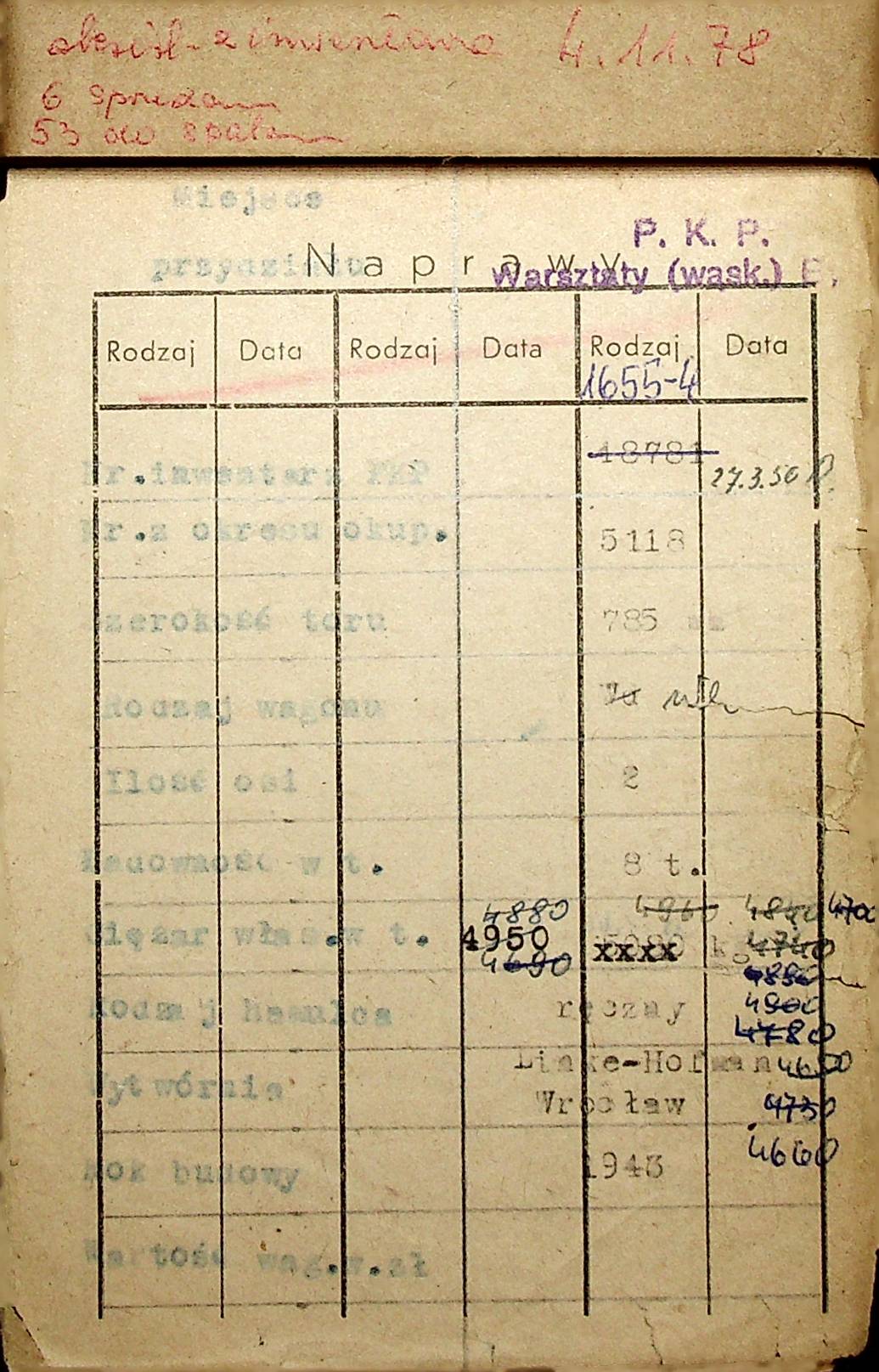 Karta wagonu Górnośląskich Kolei Wąskotorowych |