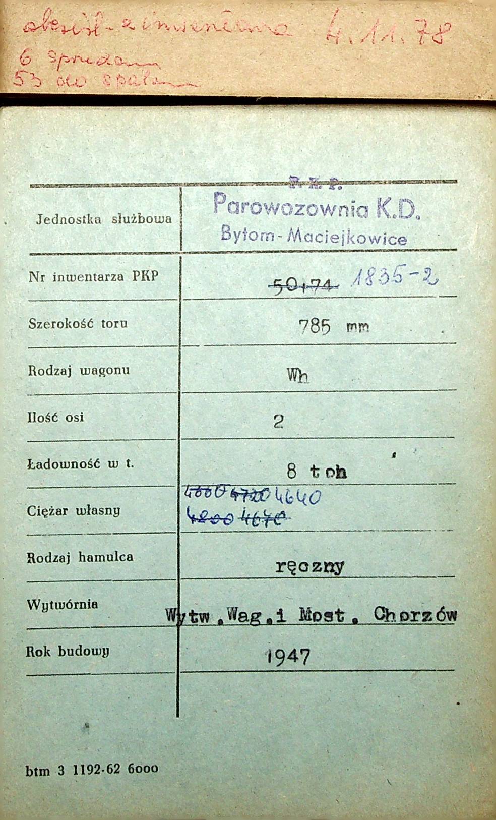 Karta wagonu Górnośląskich Kolei Wąskotorowych |