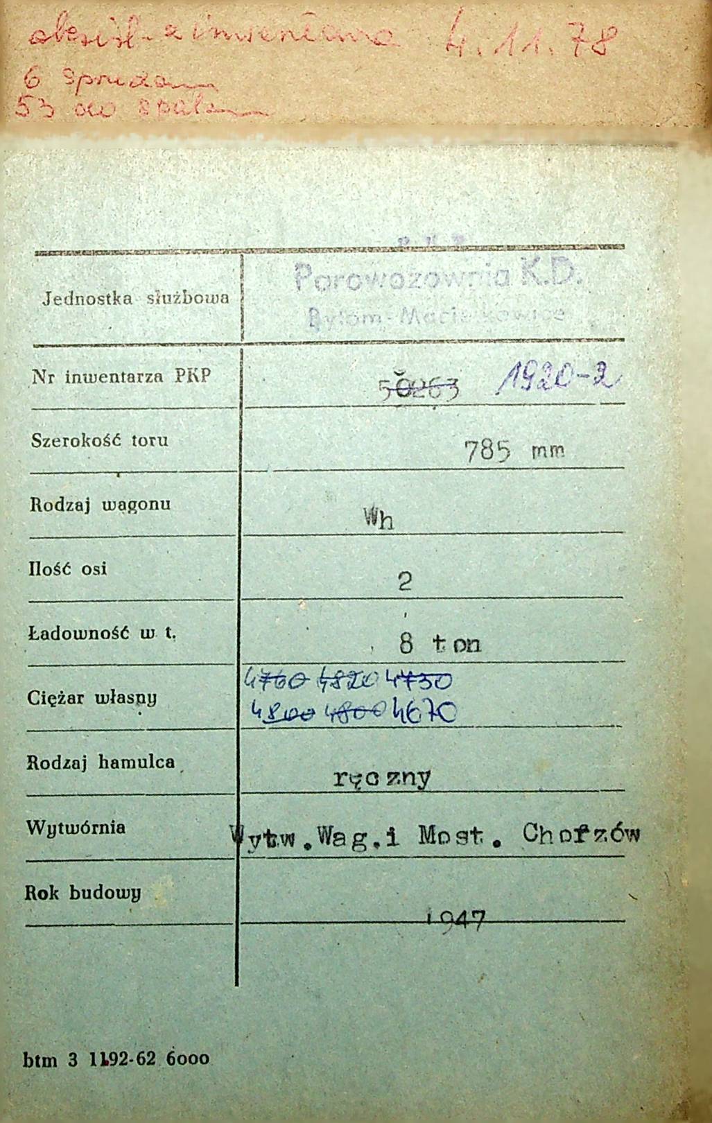 Karta wagonu Górnośląskich Kolei Wąskotorowych |
