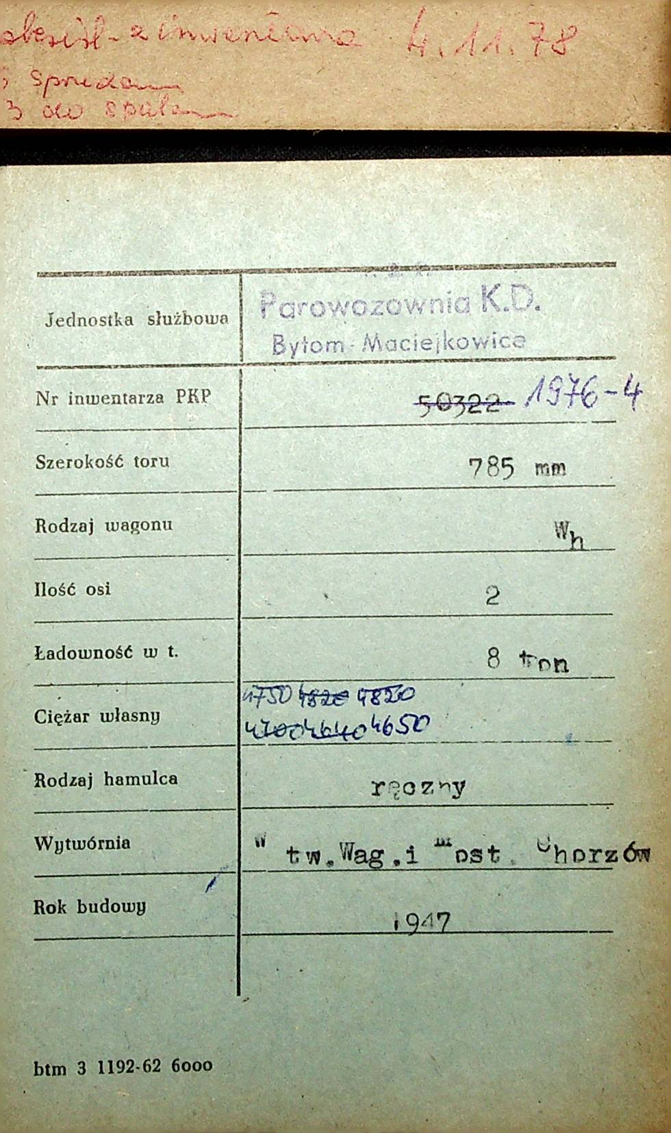 Karta wagonu Górnośląskich Kolei Wąskotorowych |