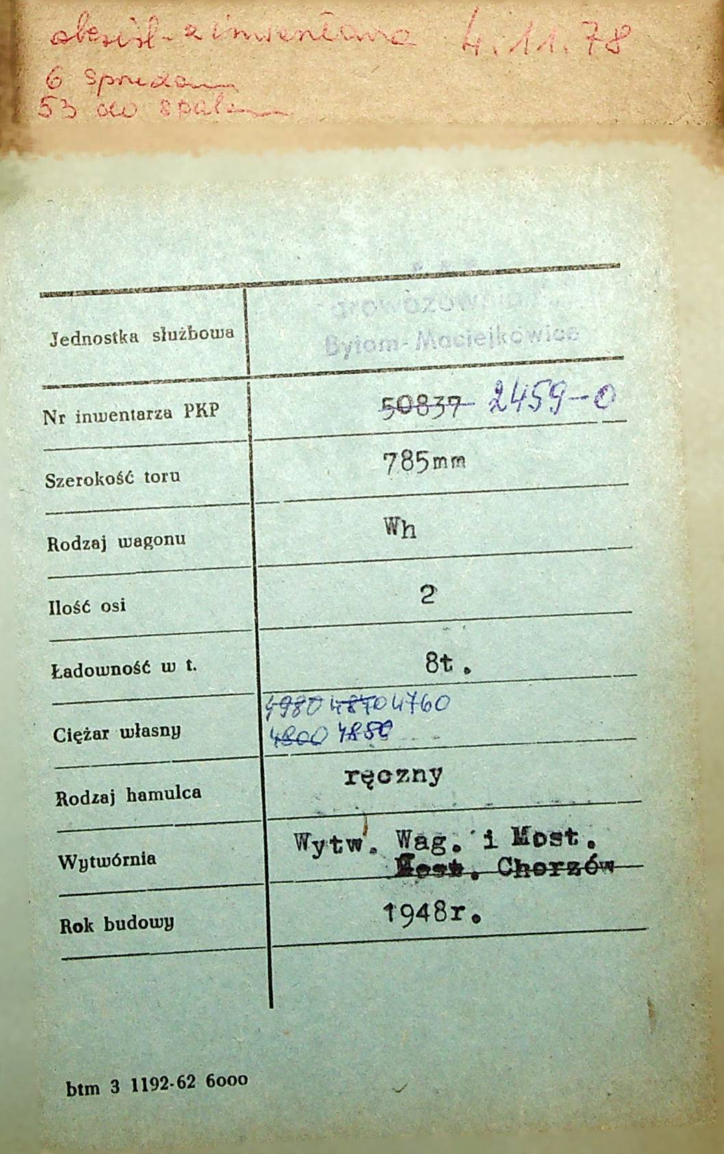 Karta wagonu Górnośląskich Kolei Wąskotorowych |