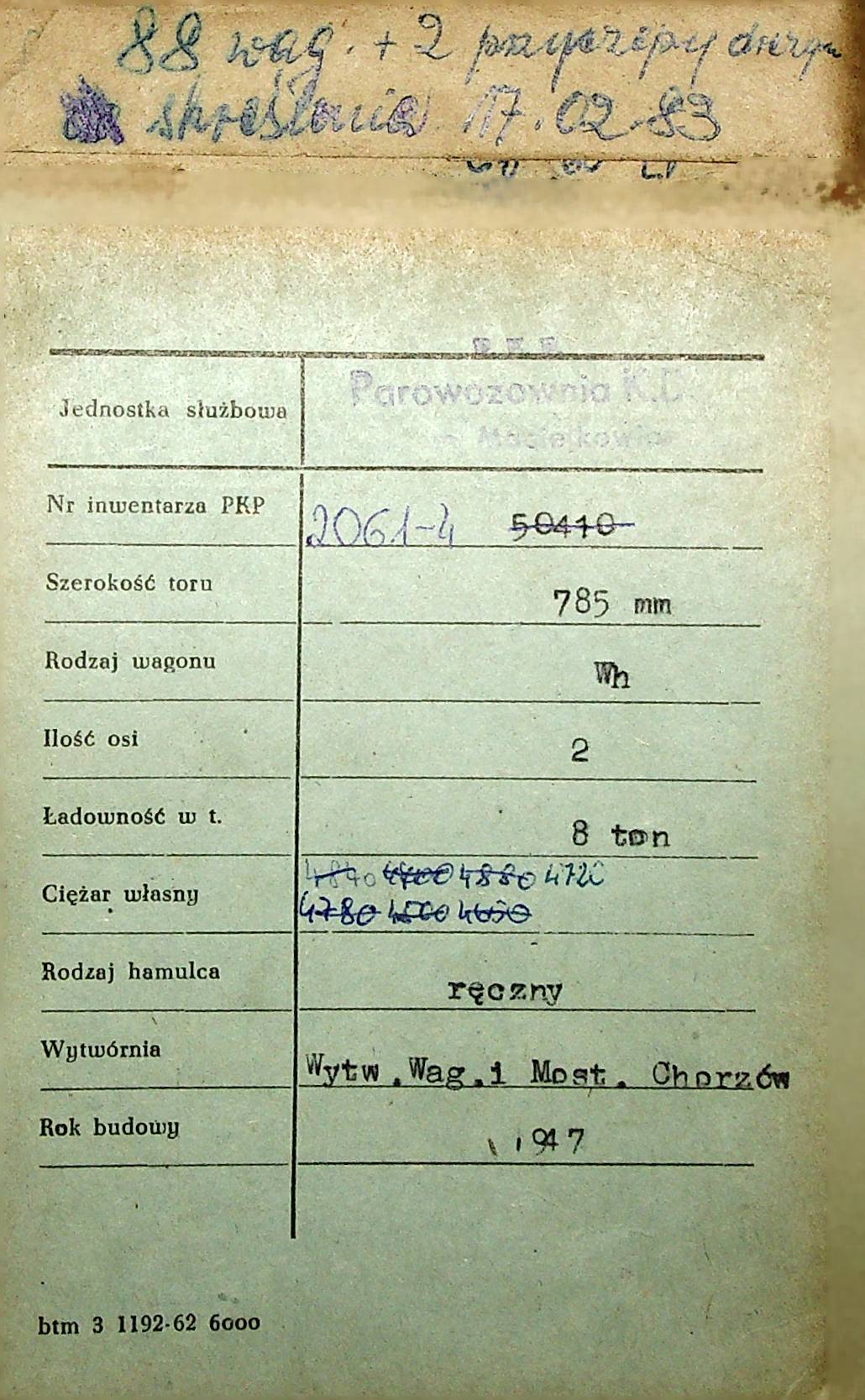 Karta wagonu Górnośląskich Kolei Wąskotorowych |