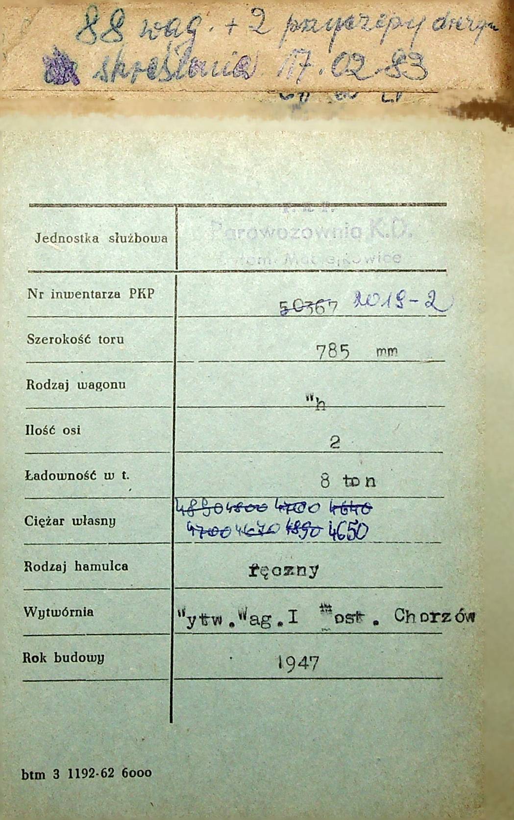 Karta wagonu Górnośląskich Kolei Wąskotorowych |
