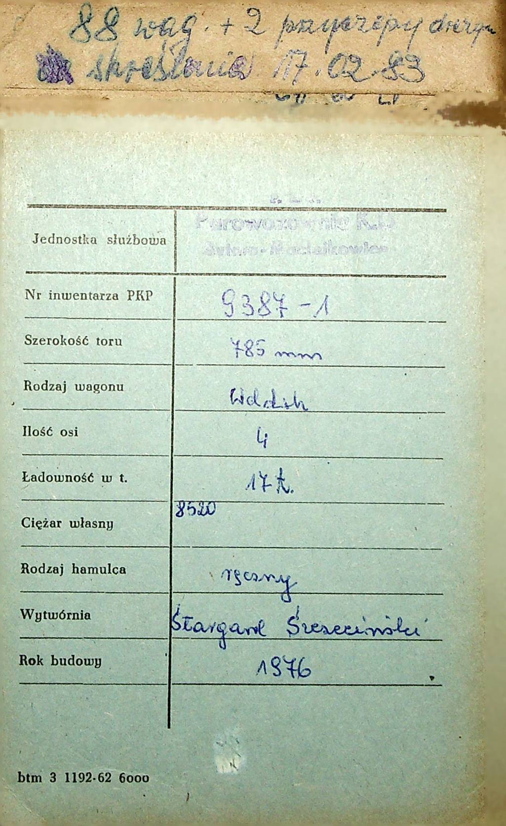 Karta wagonu Górnośląskich Kolei Wąskotorowych |