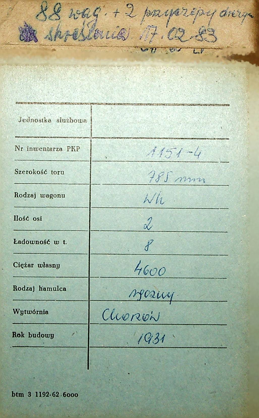 Karta wagonu Górnośląskich Kolei Wąskotorowych |
