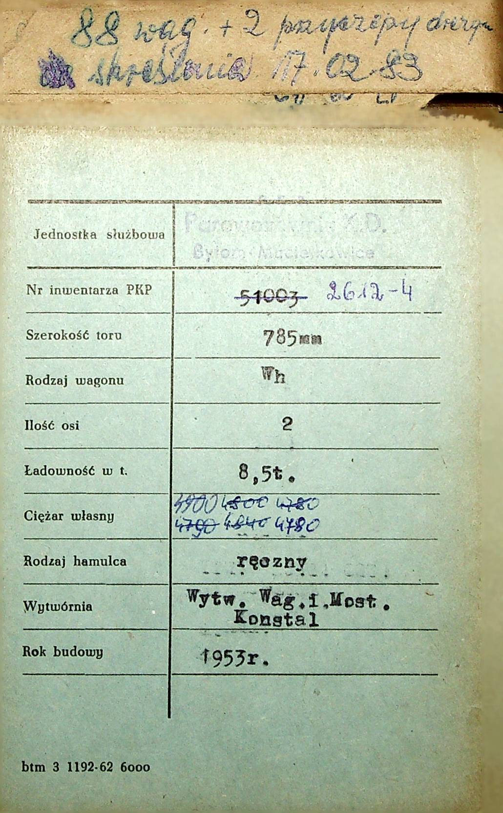 Karta wagonu Górnośląskich Kolei Wąskotorowych |